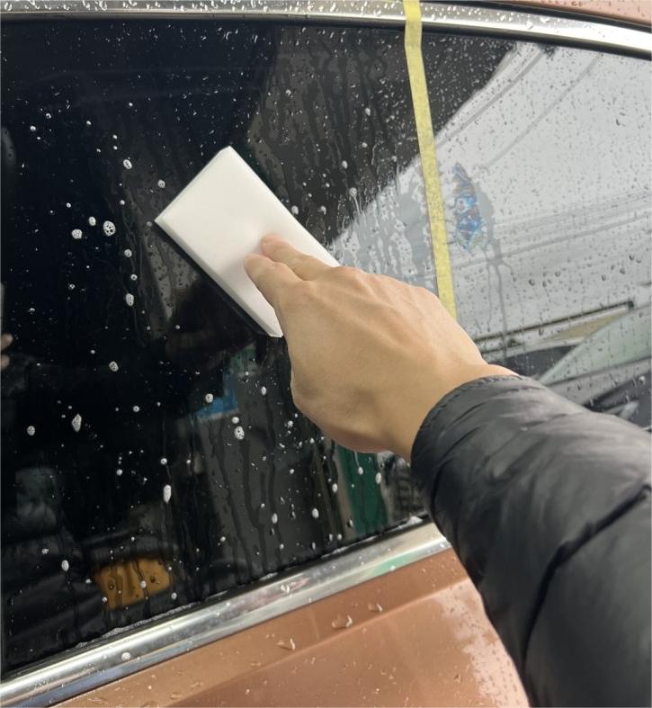 2.擦拭汽車玻璃上有油膜的地方(如果是長時(shí)間未清洗的頑固污漬建議搭配上油膜水漬去除劑使用效果會更好);