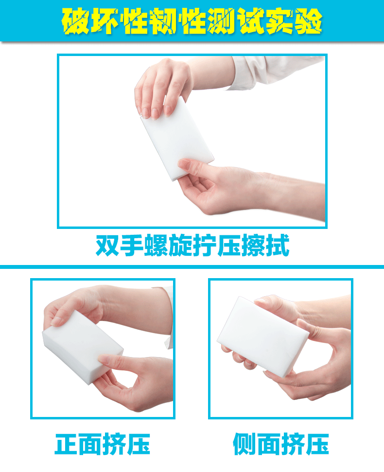 使用該產(chǎn)品只需用水,不需清潔劑,去污能力強(qiáng),采用物理去污的機(jī)理,依靠海綿內(nèi)的納米毛細(xì)管開孔結(jié)構(gòu),在抹拭過程自動(dòng)吸附物體表面的污漬,完全不依賴任何化學(xué)洗滌劑去幫助降解,具省時(shí),省力,省錢,便利,環(huán)保,健康等特點(diǎn)。
